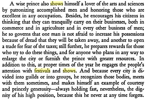 • Political impacts "Bread and Games" in Rome Nicolo Machiavelli: Il Principe